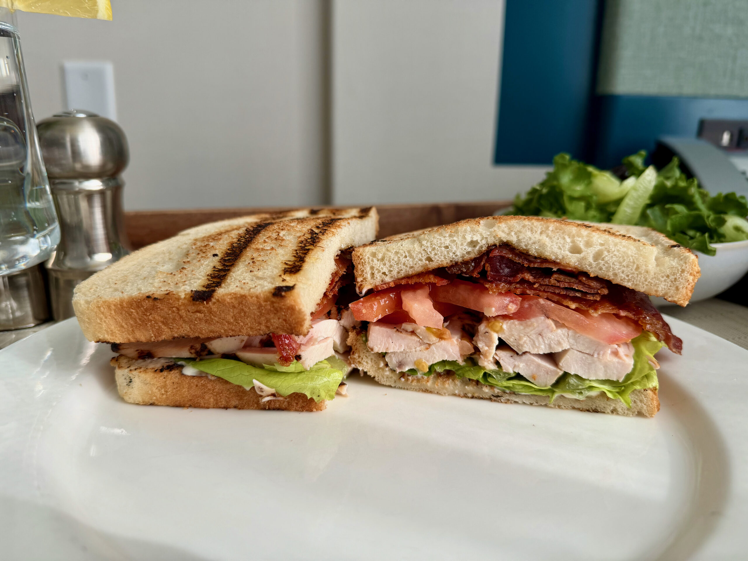 Plated in the plainest fashion possible, the Sofitel Montreal Golden Mile is all steak no sizzle, and in order to get a good photo, I pried the meal apart to reveal its insides. A mountain of stacked ingredients, the chunky chicken breast, extremely moist and coked with perfection, did its best to balance to heaping allotment of salty bacon. A sandwich fit for two hands, each bite down was met with joy, albeit no excitement… the club sandwich was there to do its job and nothing more: feed me.